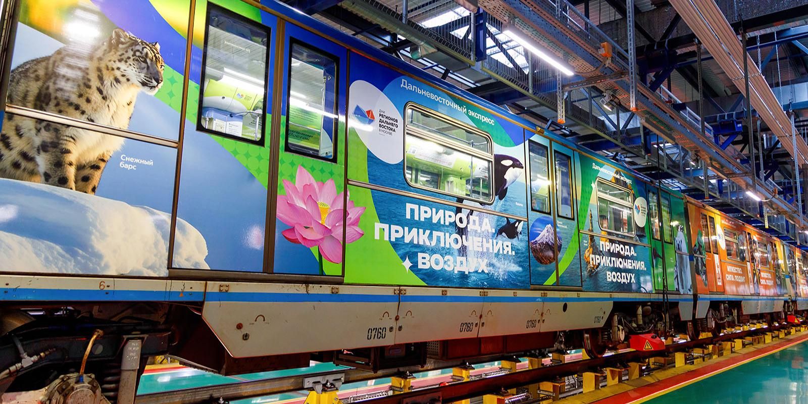 В каждом вагоне представлена уникальная экспозиция, посвященная разным аспектам жизни Дальнего Востока. Проект реализован в рамках фестиваля «Дни регионов Дальнего Востока в Москве», который знакомит пассажиров с потенциалом 11 субъектов РФ.