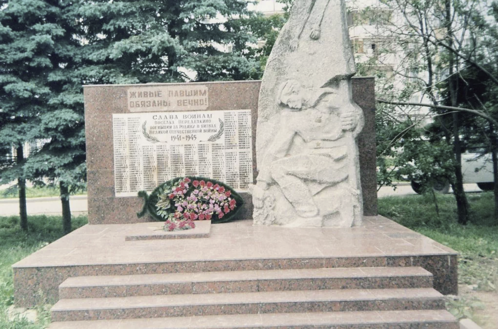 Реконструкция памятника жителям поселка Переделкино, отдавшим жизни за Родину в годы Великой Отечественной войны 1941-1945 гг., прошла в ЗАО с мая по сентябрь. На момент проверки специалисты окончили все основные работы. Они сделали новый фундамент, смонтировали полированные мраморные плиты, замостили тротуар и провели облицовку бордюра. На памятнике высечены строки: «Живые навечно в долгу перед павшими! Живые навечно в долгу перед павшими!».