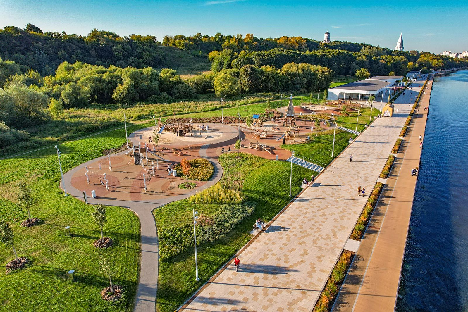 В рамках первого этапа благоустройства «Коломенского» создали променад протяженностью 3,5 км. Недалеко от места, где Жужа падает в Москву-реку появился свадебный сад с площадкой для церемоний на воде. На юге столицы организовали новый прогулочный маршрут длиной 11,4 км по шести набережным, включая Шлюзовую, Дербеневскую, Павелецкую и Даниловскую. Променад дополнил сеть прогулочных зон. С одной стороны он ведет к Парку Горького и Воробьевым горам, а с другой — к музею-заповеднику «Коломенское».