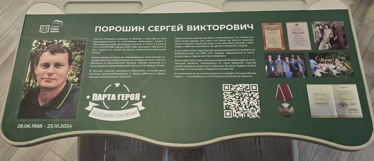 В столичной школе №1861 открыли Парту Героя Сергея Порошина.